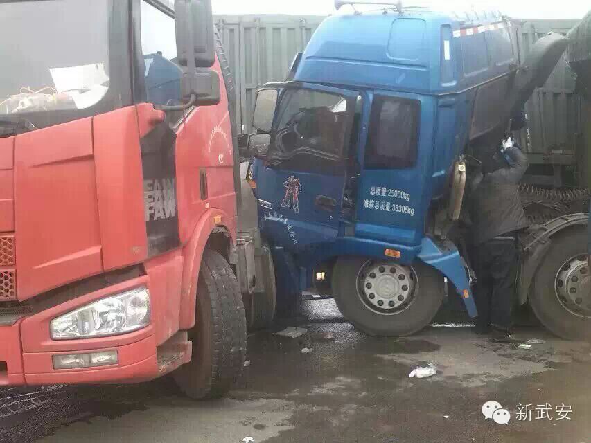 4月26日,在我市东二环银隆新能源公司东门南侧,三辆货车发生交通事故。从现场一位拍客用手机拍下的视频看,一辆满载货物的后八轮从邯武快速路立交桥下东二环自南向北行驶,到银隆新能源公司东门南侧时,后八轮司机开始向西调头,正当这辆车在上下道中间调头时,在它后方的“牛鼻子”拖挂车横冲直撞而来,“牛鼻子”拖挂车为了避免与后八轮相撞,司机本能地猛打方向盘,就在这一刹那,恰巧与北面飞奔而来的满载油桶的大挂车相撞,顿时形成了三车相撞的局面。